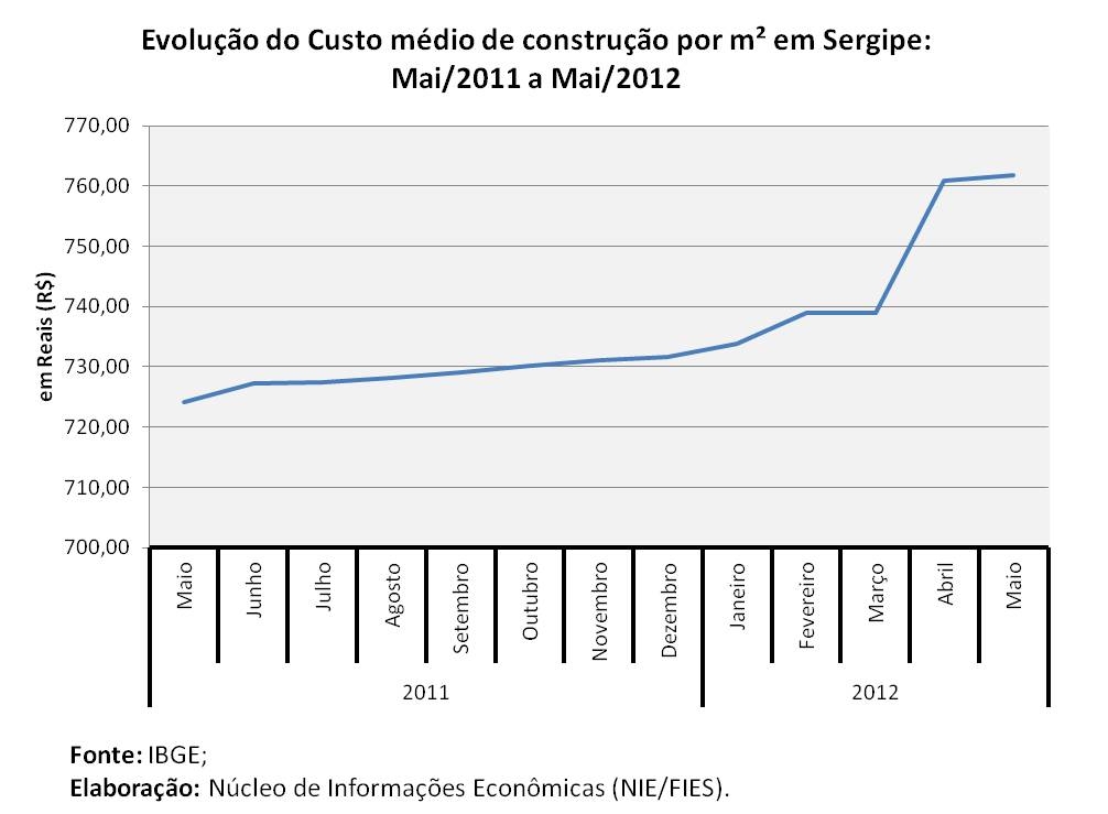 O custo médio da construção em Sergipe ficou em R$ 761,78, no mês passado, sendo o quarto menor do Brasil.