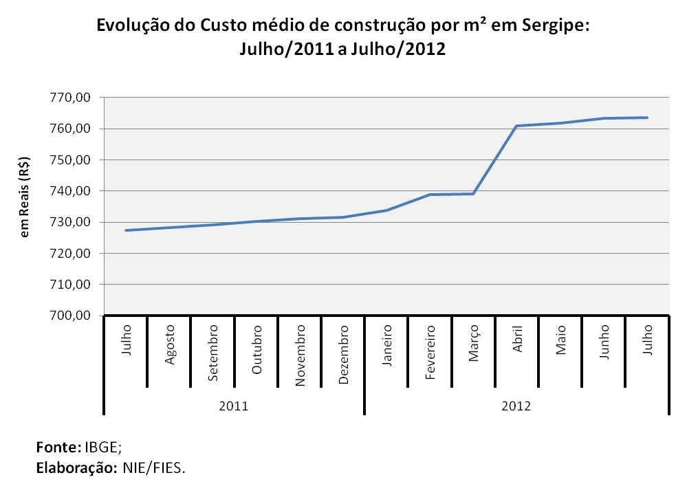 Análise realizada pelo Boletim Sergipe Econômico, parceria do Núcleo de Informações Econômicas da Federação das Indústrias do Estado de Sergipe (FIES) e do Departamento de Economia da UFS, com base nos dados do Sistema Nacional de Pesquisa de Custos e Índices da Construção Civil (Sinapi), calculado pelo IBGE em convênio com a Caixa, apontou que o índice que mede a evolução do custo médio de construção, por metro quadrado (m²), em Sergipe, permaneceu praticamente estável entre junho e julho, com pequena variação de 0,02%.