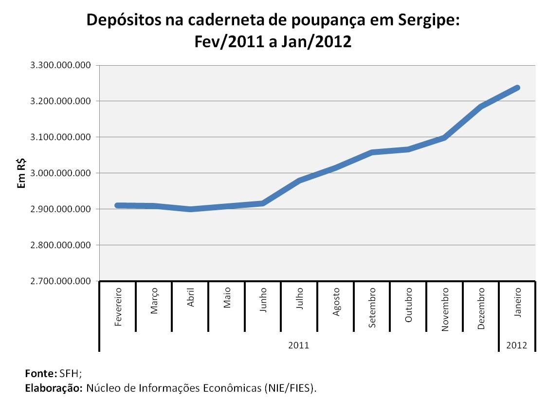 Análise realizada pelo Boletim Sergipe Econômico, parceria do Núcleo de Informações Econômicas da Federação das Indústrias do Estado de Sergipe (FIES) e do Departamento de Economia da UFS, com base nos dados do Banco Central, revelou que os depósitos de recursos, na caderneta de poupança em Sergipe, continuaram acima dos R$ 3 bilhões pelo sexto mês consecutivo.