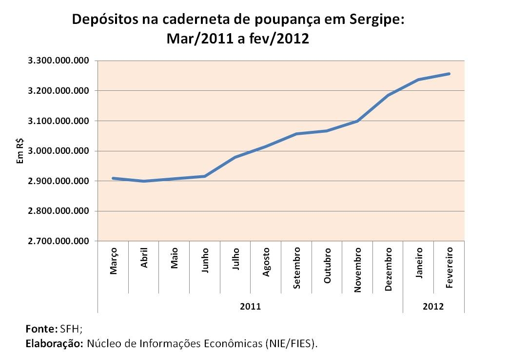 Análise realizada pelo Boletim Sergipe Econômico, parceria do Núcleo de Informações Econômicas da Federação das Indústrias do Estado de Sergipe (FIES) e do Departamento de Economia da UFS, com base nos dados do Sistema Financeiro de Habitação (SFH), revelou que os depósitos de recursos na caderneta de poupança, no estado, continuam acima dos R$ 3 bilhões.