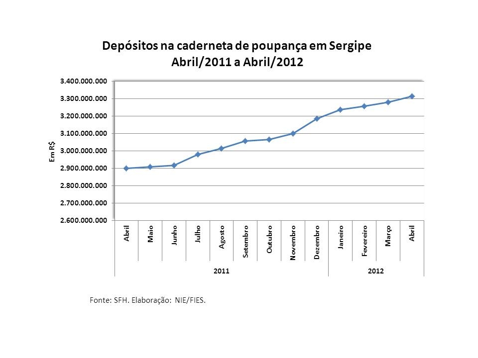 Análise realizada pelo Boletim Sergipe Econômico, parceria do Núcleo de Informações Econômicas da Federação das Indústrias do Estado de Sergipe (FIES) e do Departamento de Economia da UFS, com base nos dados do Sistema Financeiro de Habitação (SFH), revelou que os depósitos na caderneta de poupança, em Sergipe, no mês de abril deste ano, somaram mais de R$ 3,3 bilhões, permanecendo acima dos R$ 3 bilhões pelo nono mês consecutivo.