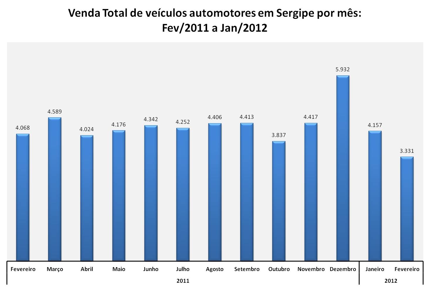 Análise realizada pelo Boletim Sergipe Econômico, parceria do Núcleo de Informações Econômicas da Federação das Indústrias do Estado de Sergipe (FIES) e do Departamento de Economia da UFS, com base nos dados da FENABRAVE, indicou que as vendas de veículos em Sergipe, no mês de fevereiro, recuaram 19,9% em relação a janeiro deste ano e 18,1% na comparação com fevereiro do ano passado.