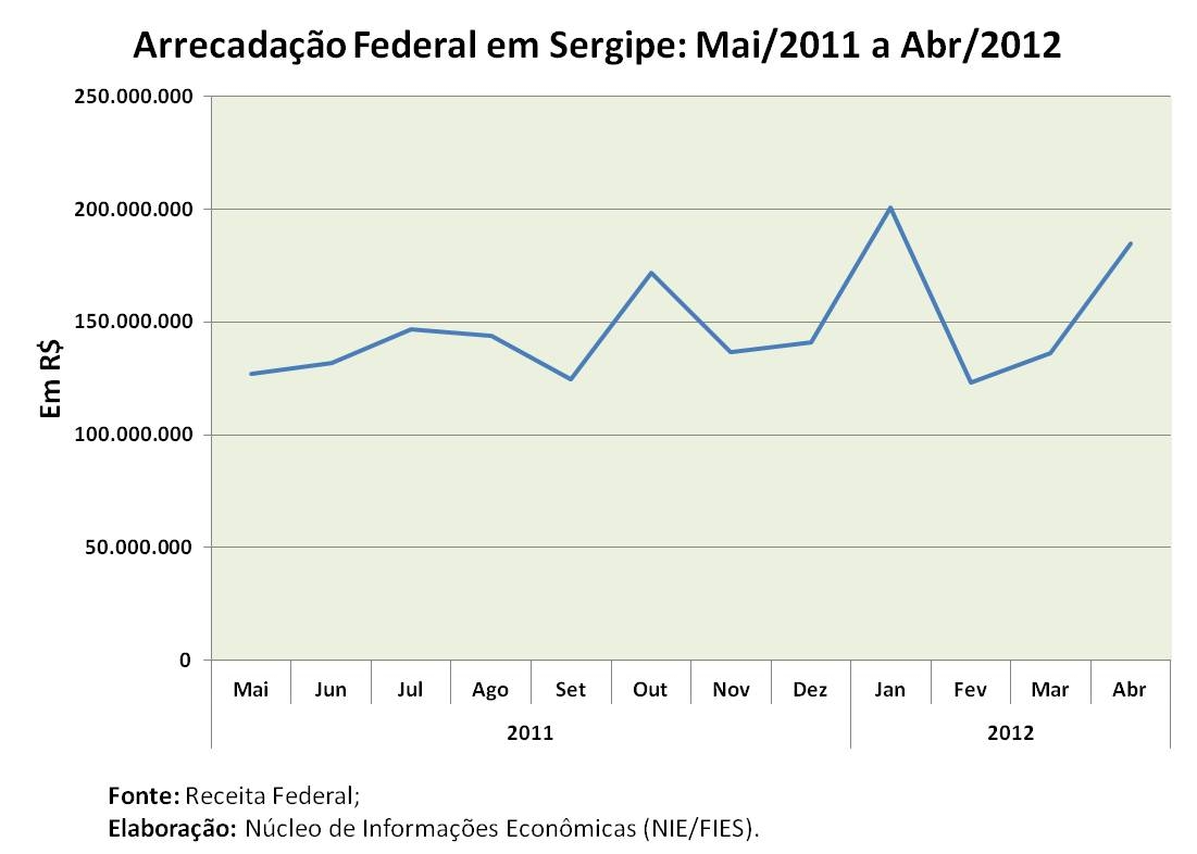 Análise realizada pelo Boletim Sergipe Econômico, parceria do Núcleo de Informações Econômicas da Federação das Indústrias do Estado de Sergipe (FIES) e do Departamento de Economia da UFS, com base nos dados da Receita Federal do Brasil (RFB), mostrou que a arrecadação de tributos e demais receitas federais apresentou crescimento nominal (a preços correntes) de 35,9%, em relação ao mês anterior (março/2012).