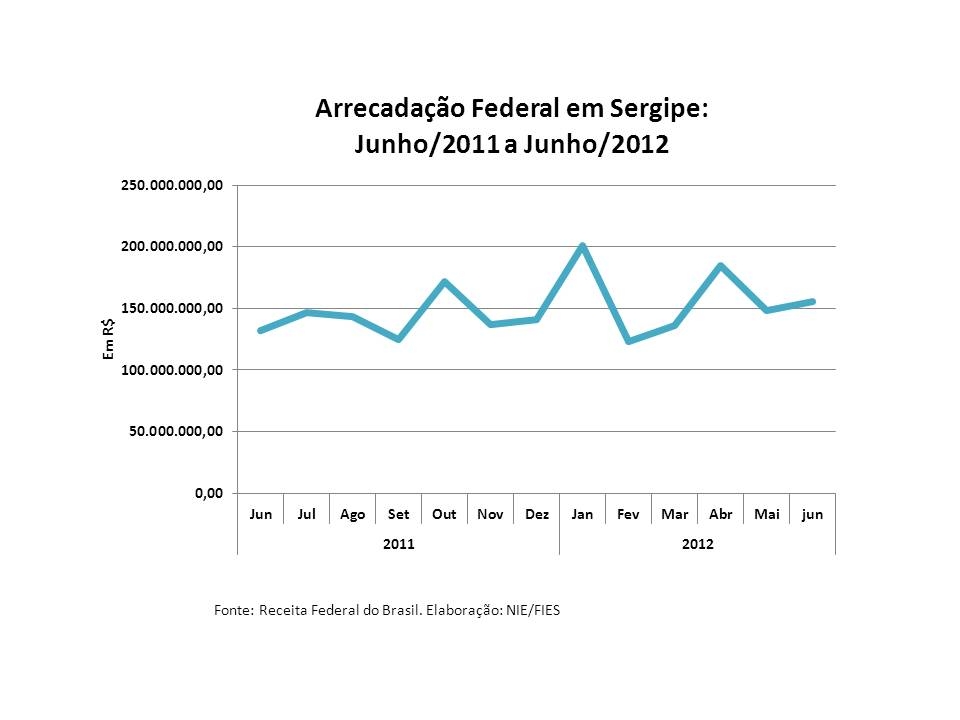 Análise realizada pelo Boletim Sergipe Econômico, parceria do Núcleo de Informações Econômicas da Federação das Indústrias do Estado de Sergipe (FIES) e do Departamento de Economia da UFS, com base nos dados da Receita Federal do Brasil, apontou que, em junho deste ano, a arrecadação de tributos federais, no estado, somou R$ 155,5 milhões, sendo 18% (em termos nominais) maior que a arrecadação do mesmo período de 2011. Já no comparativo com maio deste ano, houve aumento de 4,8%, também em termos nominais.