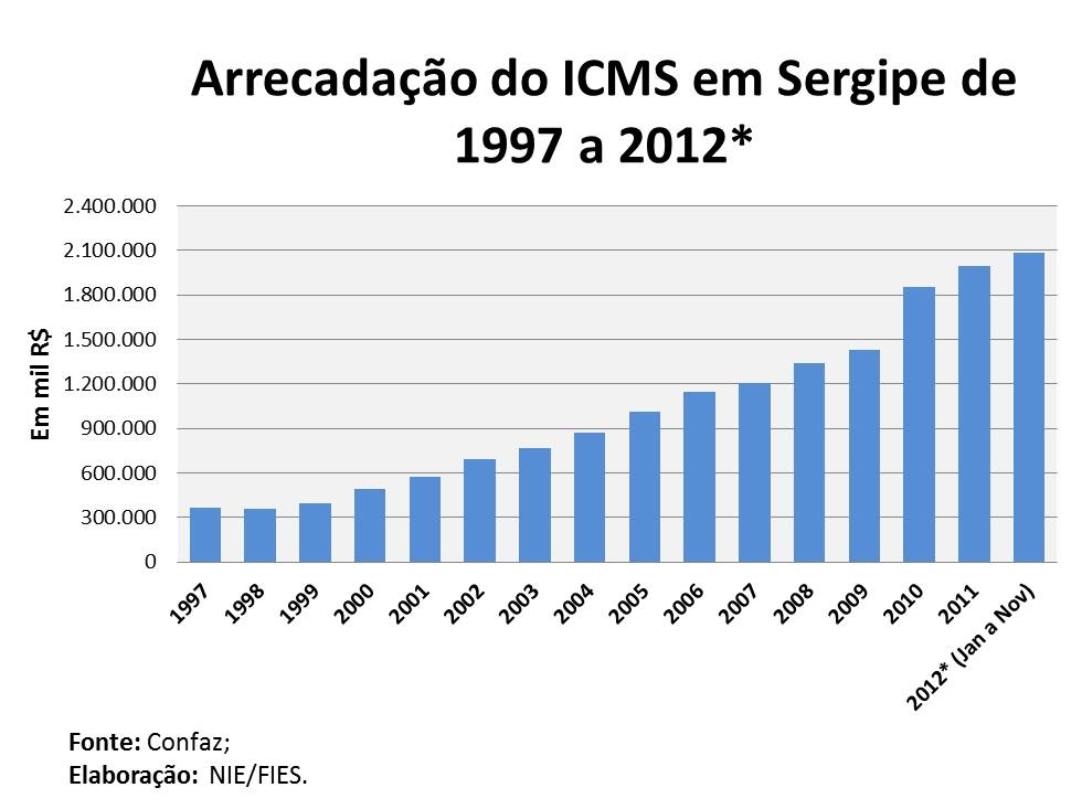 Análise realizada pelo Boletim Sergipe Econômico, parceria do Núcleo de Informações Econômicas da Federação das Indústrias do Estado de Sergipe (FIES) e do Departamento de Economia da UFS, com base nos dados do Confaz, indicou que, de janeiro a novembro do ano passado, a arrecadação do ICMS no estado superou a marca de R$ 2 bilhões, sendo o maior montante já arrecadado em 15 anos, de acordo com a série histórica que teve início em 1997.