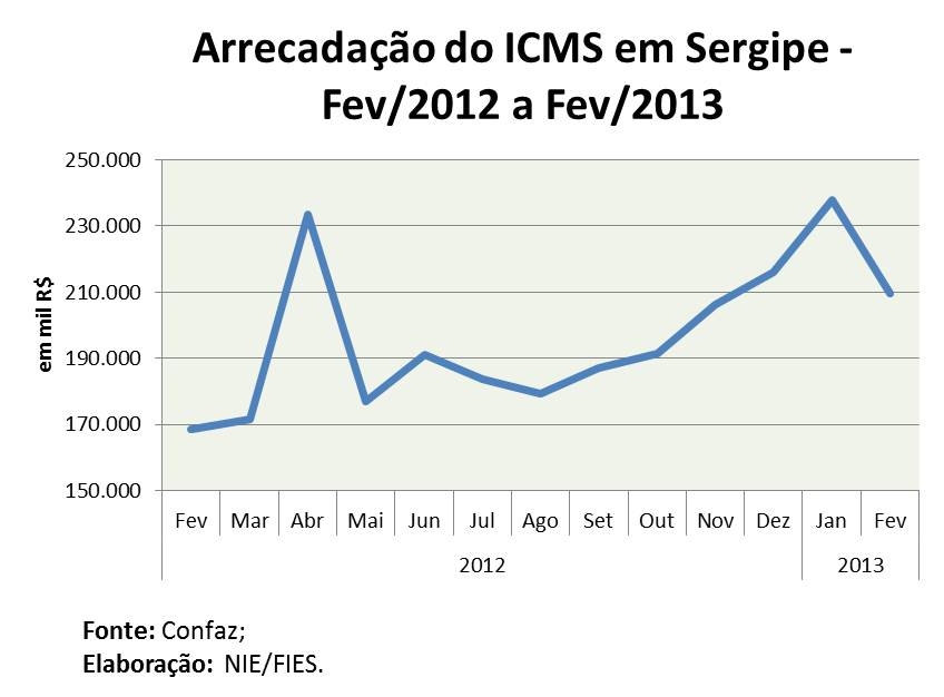 Análise realizada pelo Boletim Sergipe Econômico, parceria do Núcleo de Informações Econômicas da Federação das Indústrias do Estado de Sergipe (FIES) e do Departamento de Economia da UFS, com base nos dados do Confaz, apontou que no segundo mês do ano, a arrecadação do ICMS no estado chegou a R$ 209,4 milhões, sendo recorde para meses de fevereiro, de acordo com a série histórica que teve início em 1997.