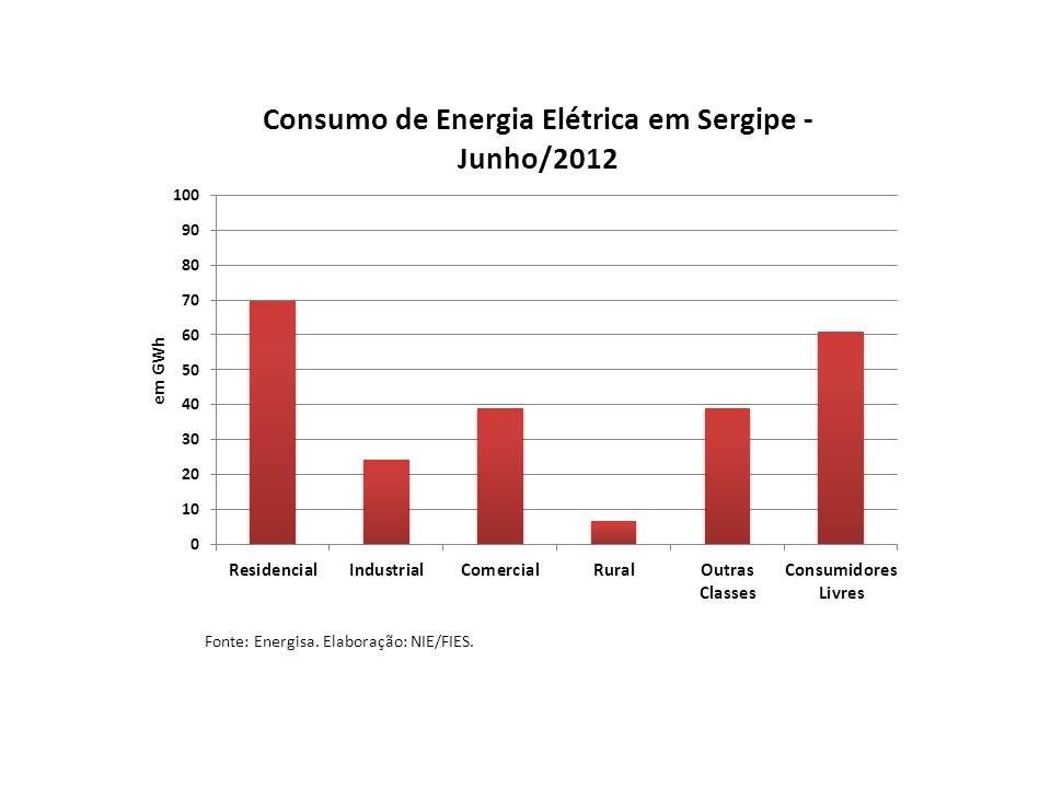 Análise realizada pelo Boletim Sergipe Econômico, parceria do Núcleo de Informações Econômicas da Federação das Indústrias do Estado de Sergipe (FIES) e do Departamento de Economia da UFS, com base nos dados da Energisa (que gera e distribui energia para 96% do território do estado), constatou que houve crescimento no consumo de energia elétrica de 3,8%, na comparação entre maio de 2012 e o mesmo mês de 2011, em Sergipe. O consumo de energia elétrica, em maio desse ano, chegou a 187,4 Gigawatt-hora (Gwh), representando recuo de 3,7%, em relação ao mês anterior.