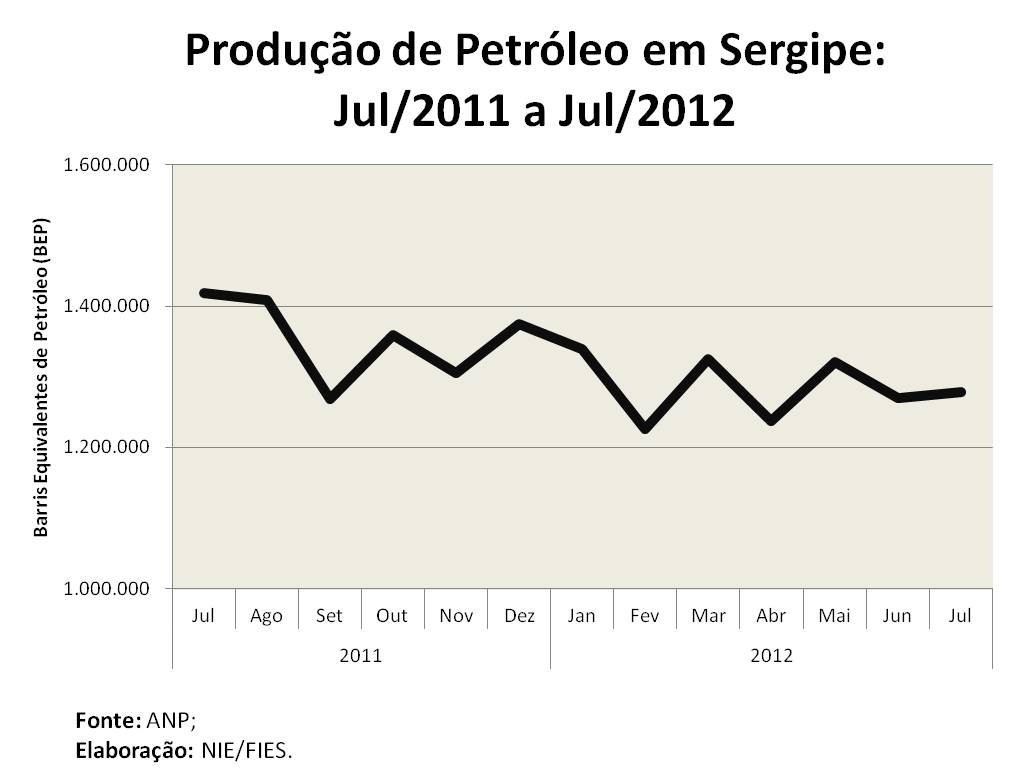 Análise realizada pelo Boletim Sergipe Econômico, parceria do Núcleo de Informações Econômicas da Federação das Indústrias do Estado de Sergipe (FIES) e do Departamento de Economia da UFS, com base nos dados da ANP, mostrou que a produção de petróleo no estado, em julho, superou 1,2 milhão de barris equivalentes de petróleo (bep), sendo 0,6% maior, em relação ao último mês de junho. Comparando com julho do ano passado, entretanto, houve redução de 10% na produção.