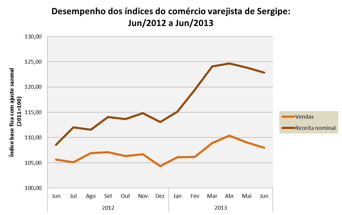 Análise realizada pelo Boletim Sergipe Econômico, parceria do Núcleo de Informações Econômicas da Federação das Indústrias do Estado de Sergipe (FIES) e do Departamento de Economia da UFS, com base nos dados da Pesquisa Mensal do Comércio (PMC) do IBGE, apontou que as vendas do comércio varejista sergipano cresceram 3,2% no primeiro semestre deste ano, sobre o mesmo período de 2012.