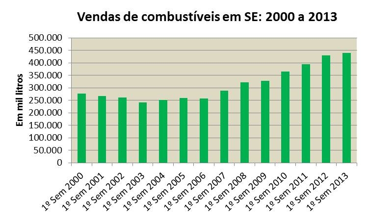 Análise realizada pelo Boletim Sergipe Econômico, uma parceria do Núcleo de Informações Econômicas (NIE) da Federação das Indústrias do Estado de Sergipe (FIES) e do Departamento de Economia da UFS, revelou, a partir de dados baseados na ANP, que as vendas de combustíveis chegaram a mais de 440,7 milhões de litros em Sergipe no primeiro semestre de 2013.