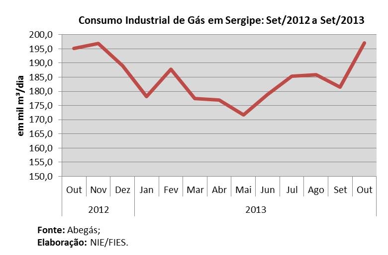 Este consumo mostrou recuperação tanto na comparação mensal quanto anual. Em relação ao último mês de setembro, o total de gás consumido foi 6,5% maior, enquanto em relação ao mesmo mês do ano anterior, o consumo mostrou-se 0,6% maior. No acumulado do ano (até outubro), entretanto, os dados revelam que Sergipe tem consumido menos gás, com volume 0,9% menor quando comparado ao mesmo período do ano passado.