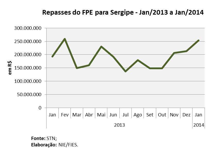 Análise realizada pelo Boletim Sergipe Econômico, parceria do Núcleo de Informações Econômicas da Federação das Indústrias do Estado de Sergipe (FIES) e do Departamento de Economia da UFS, com base nos dados da Secretaria do Tesouro Nacional (STN), indicou que o repasse do Fundo de Participação dos Estados (FPE) para o estado foi recorde no mês passado. Foram destinados a Sergipe R$ 253,9 milhões, apresentando elevação real de 24,7% na transferência, quando comparada com janeiro de 2013. Sobre dezembro último, o aumento foi de 18,9%, também em termos reais. Este montante repassado ao estado foi o maior já registrado para meses de janeiro, de acordo com a série histórica iniciada em 1997.