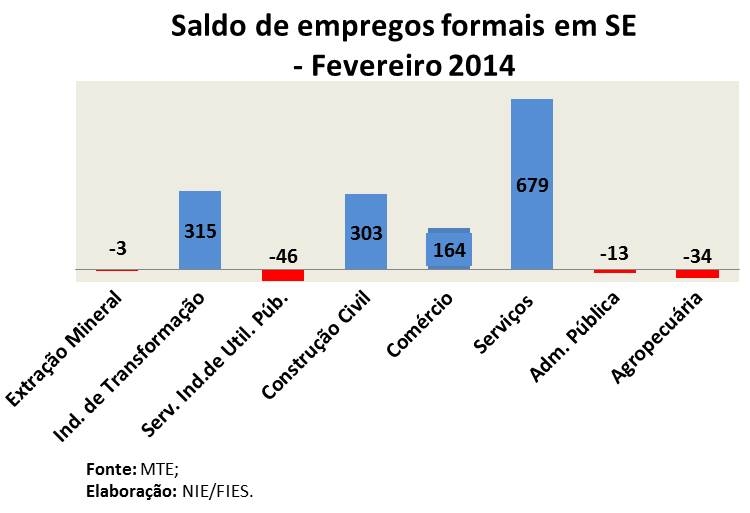 No primeiro bimestre de 2014, Sergipe acumula um saldo positivo de empregos formais, tendo gerado 2.587 novos postos de trabalho, bastante superior ao total do mesmo período de 2013, cujo saldo havia sido de 81 novas vagas.