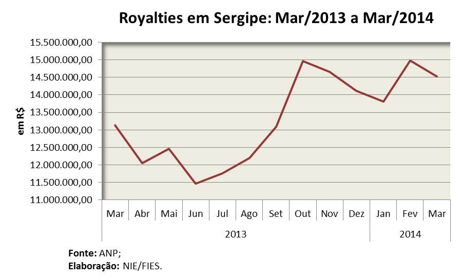 Análise realizada pelo Boletim Sergipe Econômico, uma parceria do Núcleo de Informações Econômicas (NIE) da Federação das Indústrias do Estado de Sergipe (FIES) e do Departamento de Economia da UFS, com base nos dados da ANP, indicou que o pagamento de royalties do petróleo e gás natural, para o estado, foi o maior para meses de março em quinze anos, de acordo com a série histórica iniciada em 1999.
