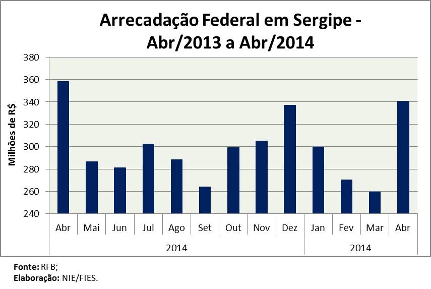 Análise realizada pelo Boletim Sergipe Econômico, parceria do Núcleo de Informações Econômicas da Federação das Indústrias do Estado de Sergipe (FIES) e do Departamento de Economia da UFS, com base nos dados da Receita Federal, verificou que a arrecadação do quarto mês do ano chegou a R$ 340,5 milhões, assinalando queda de 10,6% frente aos tributos recolhidos em abril do ano passado. Em relação ao último mês de março, contudo, houve elevação de 30,4% na arrecadação, ambas as variações em termos reais (valores descontados pela inflação).