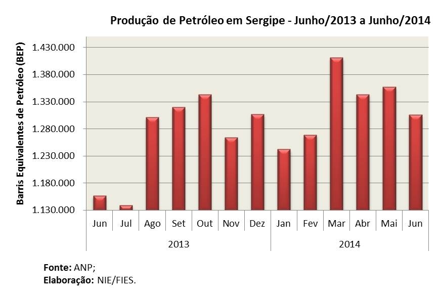Análise realizada pelo Boletim Sergipe Econômico, parceria do Núcleo de Informações Econômicas da Federação das Indústrias do Estado de Sergipe (FIES) e do Departamento de Economia da UFS, com base nos dados da ANP, mostrou que a produção de petróleo no estado, em junho de 2014, permaneceu na faixa de 1,3 milhão de barris equivalentes de petróleo (bep), porém com um leve recuo de 3,8%, em relação ao mês anterior (maio/2014). Comparando-se com o mesmo mês do ano passado, a produção se mostrou 13% maior. No primeiro semestre de 2014, a produção no estado chegou quase 8 milhões de barris, superando em 11,7% a produção do mesmo período de 2013.