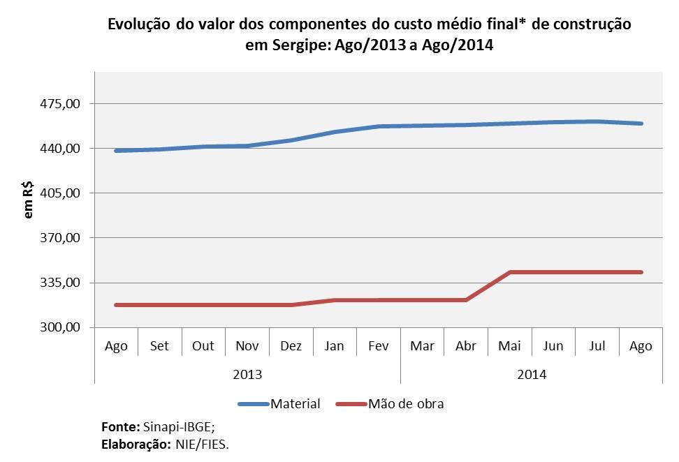 O valor do custo por metro quadrado em Sergipe, no oitavo mês de 2014, ficou em R$ 802,93. Este valor vale para as empresas do ramo da construção civil que aderiram à desoneração da folha de pagamentos, através da Lei 12.844, sancionada em julho de 2013. Para as empresas que não adotaram a desoneração da folha, o custo situou-se em R$ 855,61.