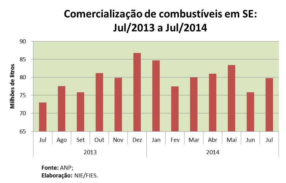 Análise realizada pelo Boletim Sergipe Econômico, parceria do Núcleo de Informações Econômicas da Federação das Indústrias do Estado de Sergipe (FIES) e do Departamento de Economia da UFS, com base nos dados da ANP, observou que no sétimo mês do ano, o consumo de combustíveis, medido através das vendas, apresentou avanço de 9,4% em relação a julho de 2013 no estado.