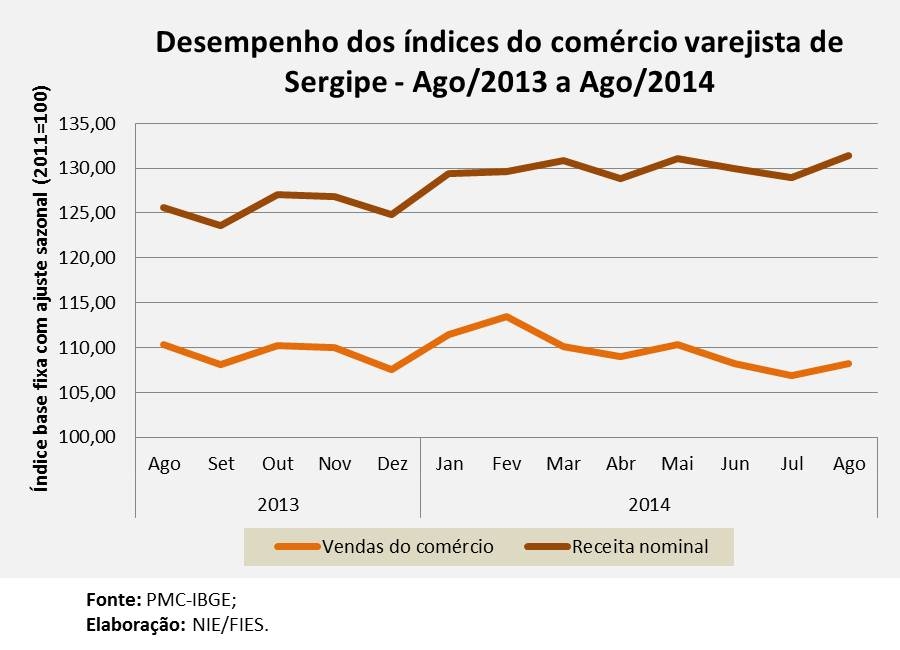 No mês de análise, a receita nominal decorrente das vendas do varejo cresceram 3,0% no comparativo com o oitavo mês do ano passado. Na análise mensal (série com ajuste sazonal), a receita apresentou acréscimo de 1,9%, enquanto este ano a receita nominal encontra-se 6,5% acima da receita obtida de janeiro a agosto do ano passado.
