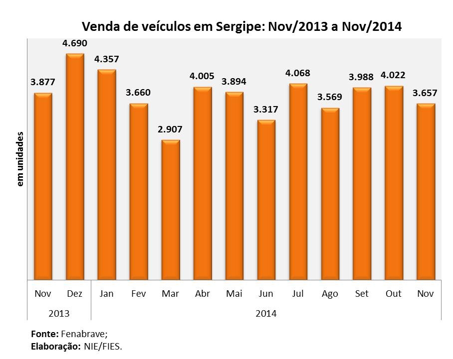 Análise realizada pelo Boletim Sergipe Econômico, parceria do Núcleo de Informações Econômicas da Federação das Indústrias do Estado de Sergipe (FIES) e do Departamento de Economia da UFS, com base nos dados da FENABRAVE, indicou que, em novembro deste ano, as vendas de veículos automotores em Sergipe recuaram 5,7% em relação a novembro do ano passado. O número de veículos automotores vendidos, no mês analisado, chegou a 3.657 unidades.