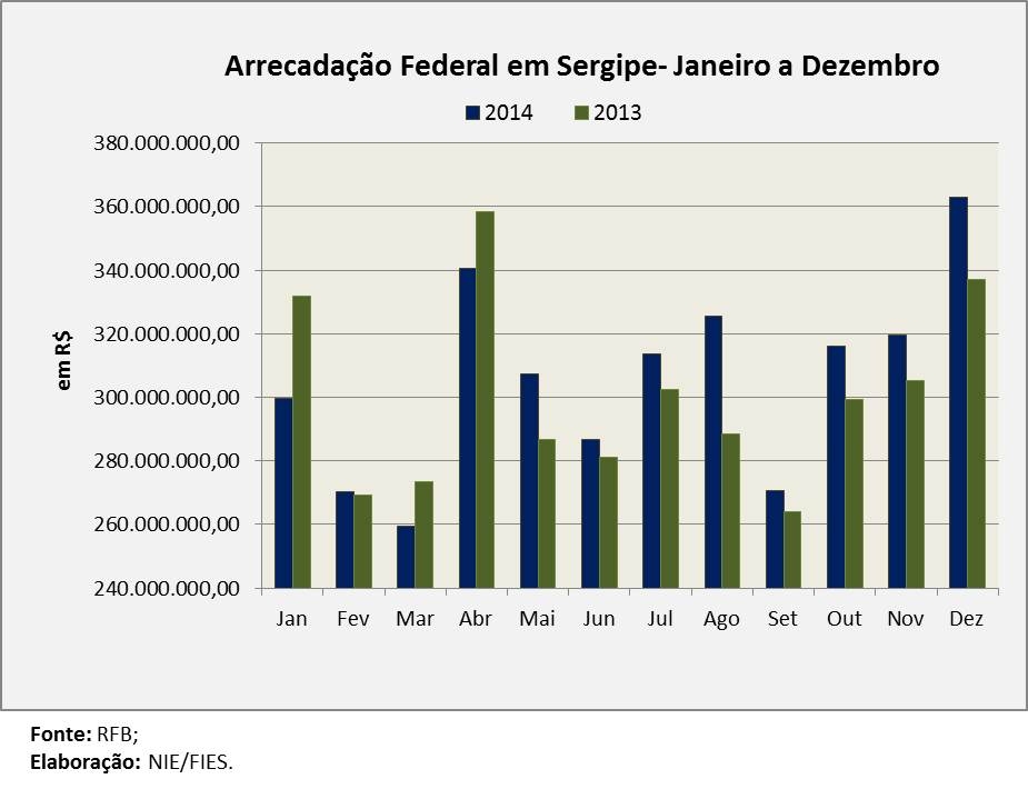 Análise realizada pelo Boletim Sergipe Econômico, parceria do Núcleo de Informações Econômicas da Federação das Indústrias do Estado de Sergipe (FIES) e do Departamento de Economia da UFS, com base nos dados da Receita Federal, verificou que a arrecadação de tributos federais no estado, em 2014, superou os R$ 3,6 bilhões, registrando recuo real (com desconto da inflação) de 4,0%, em relação a 2013.