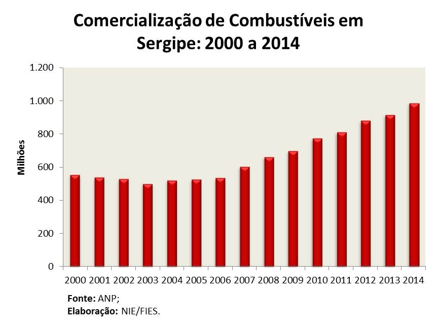 Análise realizada pelo Boletim Sergipe Econômico, parceria do Núcleo de Informações Econômicas (NIE) da Federação das Indústrias do Estado de Sergipe (FIES) e do Departamento de Economia da UFS, com base nos dados das vendas de combustíveis da ANP, apontou que em 2014 as vendas ultrapassaram os 984,6 milhões de litros. Esse valor é o maior já comercializado no estado em 14 anos, de acordo com a série histórica que teve início em 2000, sendo também 7,6 % maior que o total vendido em 2013.