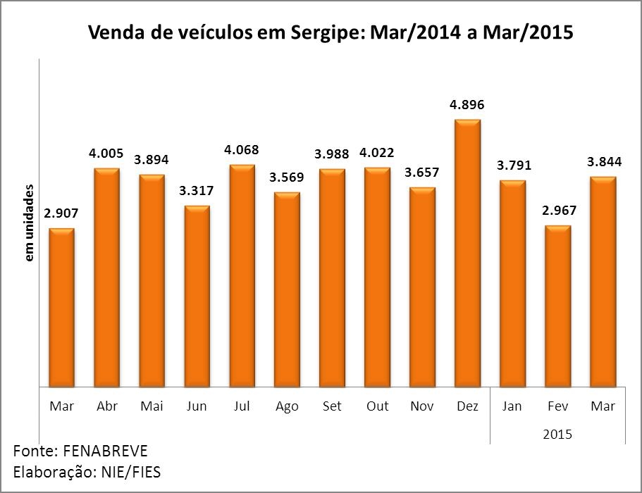 Análise realizada pelo Boletim Sergipe Econômico, parceria do Núcleo de Informações Econômicas (NIE) da Federação das Indústrias do Estado de Sergipe (FIES) e do Departamento de Economia da UFS, com base nos dados da FENABRAVE, mostrou que as vendas de veículos no estado, no primeiro trimestre de 2014, alcançaram 10.602 unidades. A quantidade de veículos comercializados no período retraiu-se 2,9% em relação aos três primeiros meses de 2014, quando foram vendidos 10.924 veículos.