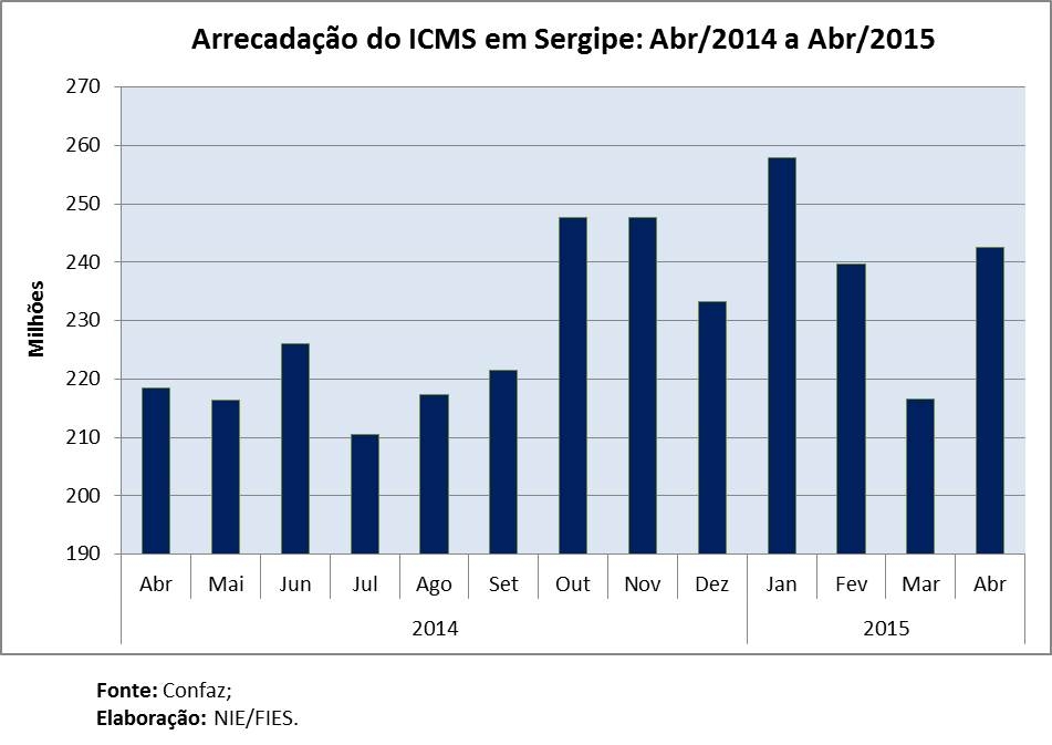 Análise realizada pelo Boletim Sergipe Econômico, parceria do Núcleo de Informações Econômicas (NIE) da Federação das Indústrias do Estado de Sergipe (FIES) e do Departamento de Economia da UFS, com base nos dados do Confaz, apontou que no quarto mês do ano, a arrecadação do ICMS no estado chegou a R$ 242,5 milhões, assinalando aumento real, ou seja, descontando a inflação do período medida pelo Índice de Preços ao Consumidor Ampliado (IPCA), em relação a abril do ano passado, de 2,6%.
