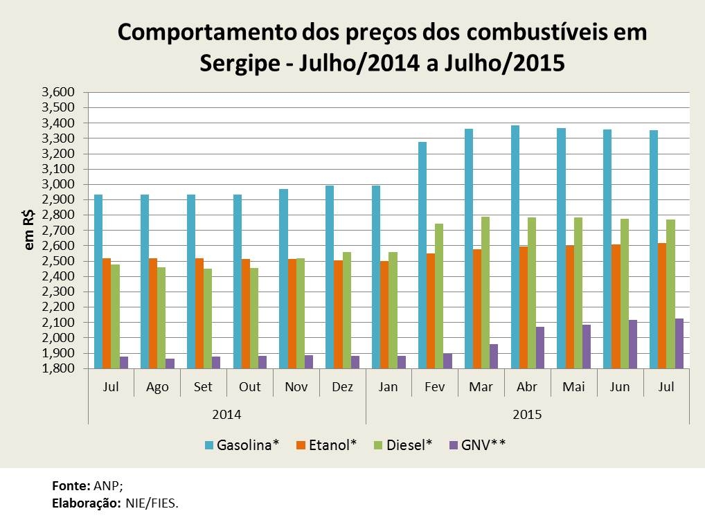 Análise realizada pelo Boletim Sergipe Econômico, parceria do Núcleo de Informações Econômicas (NIE) da Federação das Indústrias do Estado de Sergipe (FIES) e do Departamento de Economia da UFS, com base nos dados da ANP, observou que no mês passado, o preço médio vendido pelo litro da gasolina no estado ficou em R$ 3,355, no comparativo mensal, com o último mês de junho, o preço médio recuou 0,06%.