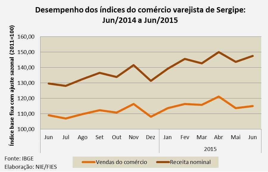Análise realizada pelo Boletim Sergipe Econômico, parceria do Núcleo de Informações Econômicas (NIE) da Federação das Indústrias do Estado de Sergipe (FIES) e do Departamento de Economia da UFS, com base nos dados da Pesquisa Mensal do Comércio (PMC) do IBGE, apontou que as vendas do comércio do estado cresceu 6,3% no sexto mês do ano em relação ao mesmo mês de 2014.