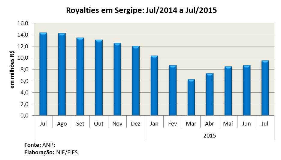 Análise realizada pelo Boletim Sergipe Econômico, uma parceria do Núcleo de Informações Econômicas (NIE) da Federação das Indústrias do Estado de Sergipe (FIES) e do Departamento de Economia da UFS, com base nos dados da ANP, indicou que o pagamento de royalties do petróleo e gás natural, para o estado, no mês de julho, chegou a R$ 9,5 milhões, valor referente à produção do quinto mês do ano.
