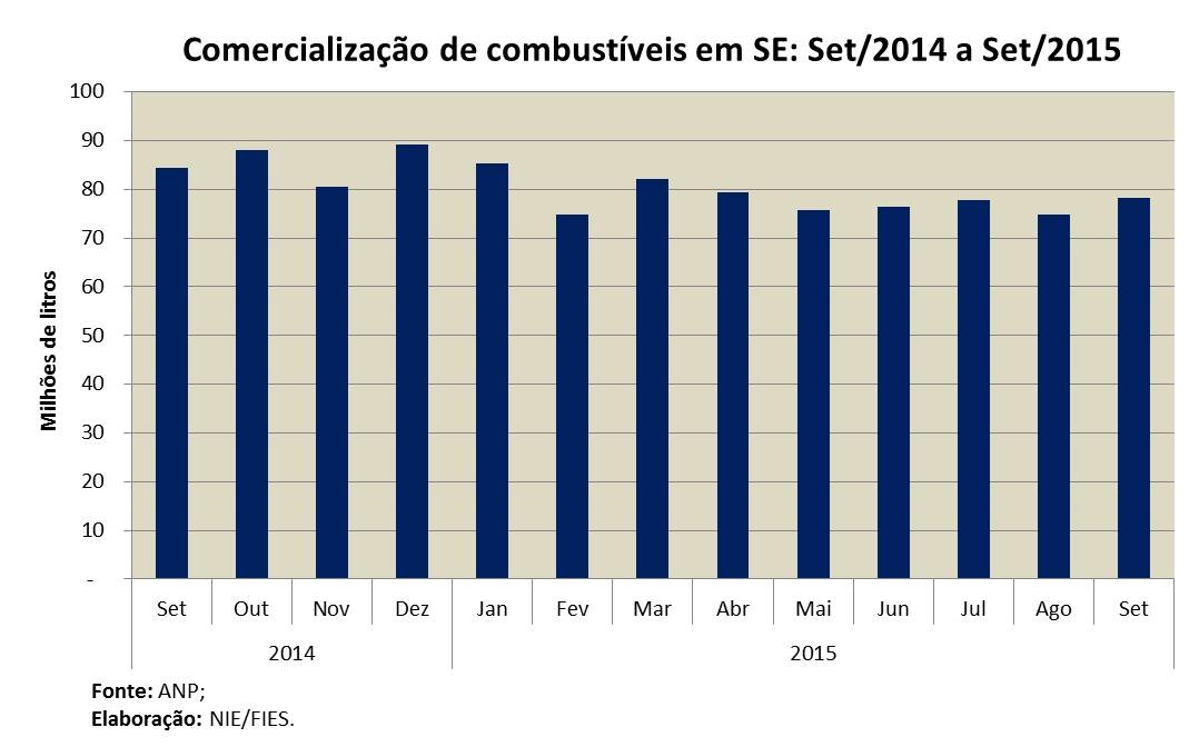 Análise realizada pelo Boletim Sergipe Econômico, parceria do Núcleo de Informações Econômicas (NIE) da Federação das Indústrias do Estado de Sergipe (FIES) e do Departamento de Economia da UFS, com base nos dados da ANP, indicou que as vendas de combustíveis no estado atingiram 78,2 milhões de litros em combustíveis, em setembro deste ano, registrando recuo de 7,3% em relação ao mesmo mês de 2014.