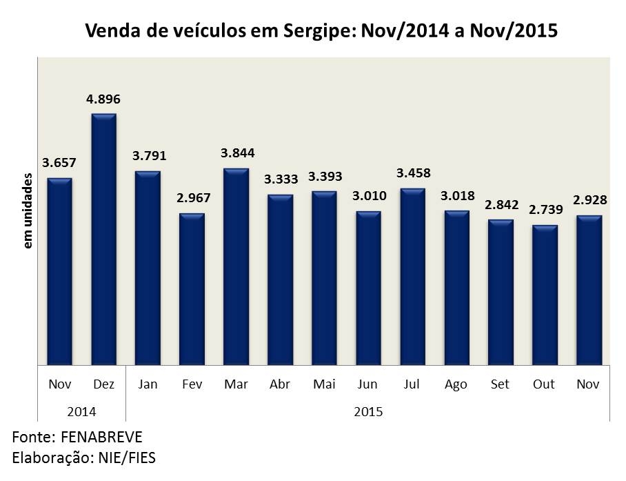 Análise realizada pelo Boletim Sergipe Econômico, parceria do Núcleo de Informações Econômicas (NIE) da Federação das Indústrias do Estado de Sergipe (FIES) e do Departamento de Economia da UFS, com base nos dados da FENABRAVE, indicou que as vendas de veículos no estado apresentaram alta de 6,9% entre novembro e outubro deste ano. Em valores absolutos, as vendas de novembro deste ano totalizaram 2.928 unidades. Nesse tipo de comparativo, essa foi à primeira alta nas vendas desde maio último, ou seja, sinalização de um princípio de recuperação do setor.