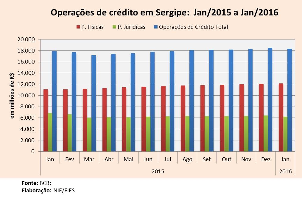 Análise realizada pelo Boletim Sergipe Econômico, parceria do Núcleo de Informações Econômicas (NIE) da Federação das Indústrias do Estado de Sergipe (FIES) e do Departamento de Economia da UFS, com base nos dados do Banco Central, indicou que as operações de crédito registradas no estado, no primeiro mês do ano, aumentaram 2,3% em relação ao mesmo mês de 2015. Em valores, as operações de crédito totalizaram R$ 18,3 bilhões.