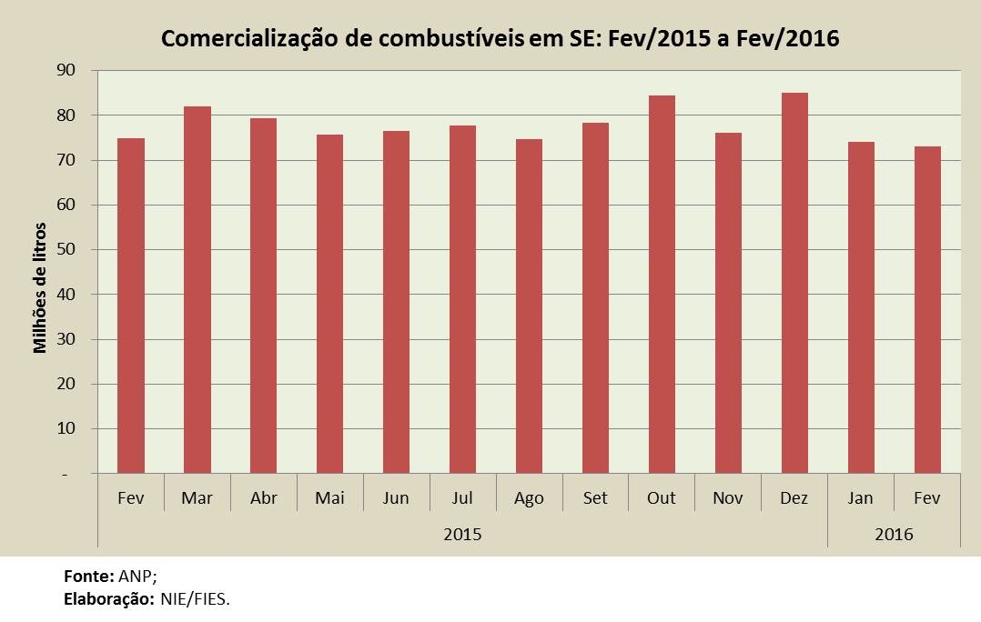 Análise realizada pelo Boletim Sergipe Econômico, parceria do Núcleo de Informações Econômicas da Federação das Indústrias do Estado de Sergipe (FIES) e do Departamento de Economia da UFS, com base nos dados da ANP, indicou que as vendas de combustíveis, no segundo mês do ano, registrou baixa de 2,2% quando comparado com fevereiro de 2015.