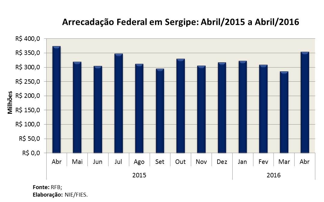 Análise realizada pelo Boletim Sergipe Econômico, parceria do Núcleo de Informações Econômicas (NIE) da Federação das Indústrias do Estado de Sergipe (FIES) e do Departamento de Economia da UFS, com base nos dados da Receita Federal, verificou que a arrecadação de abril desse ano chegou a R$ 353,9 milhões, assinalando crescimento de 23% frente aos tributos recolhidos no mês imediatamente anterior, março último.