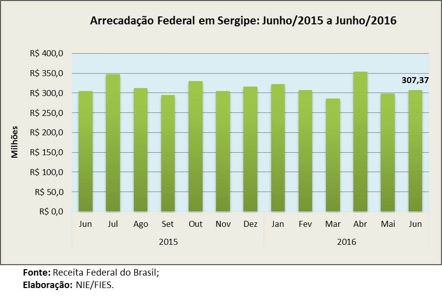 Análise realizada pelo Boletim Sergipe Econômico, parceria do Núcleo de Informações Econômicas (NIE) da Federação das Indústrias do Estado de Sergipe (FIES) e do Departamento de Economia da UFS, com base nos dados da Receita Federal, verificou que a arrecadação de junho desse ano chegou a R$ 307,3 milhões, assinalando crescimento de 2,3%, quando comparado aos tributos recolhidos no mês imediatamente anterior, maio último.