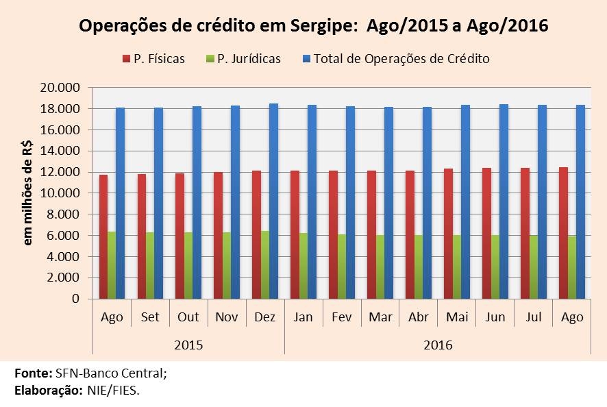 Análise realizada pelo Boletim Sergipe Econômico, parceria do Núcleo de Informações Econômicas (NIE) da Federação das Indústrias do Estado de Sergipe (FIES) e do Departamento de Economia da UFS, com base nos dados do Banco Central, revelou que o total das operações de crédito, em Sergipe, no oitavo mês do ano, ultrapassaram os R$ 18,3 bilhões. Em termos relativos, houve crescimento de 1,5% em relação a agosto do ano passado. No entanto, quando comparado com o mês imediatamente anterior, julho último, verificou-se que a tomada de crédito permaneceu estável, variações em termos absolutos, ou seja, sem considerar a inflação do período.