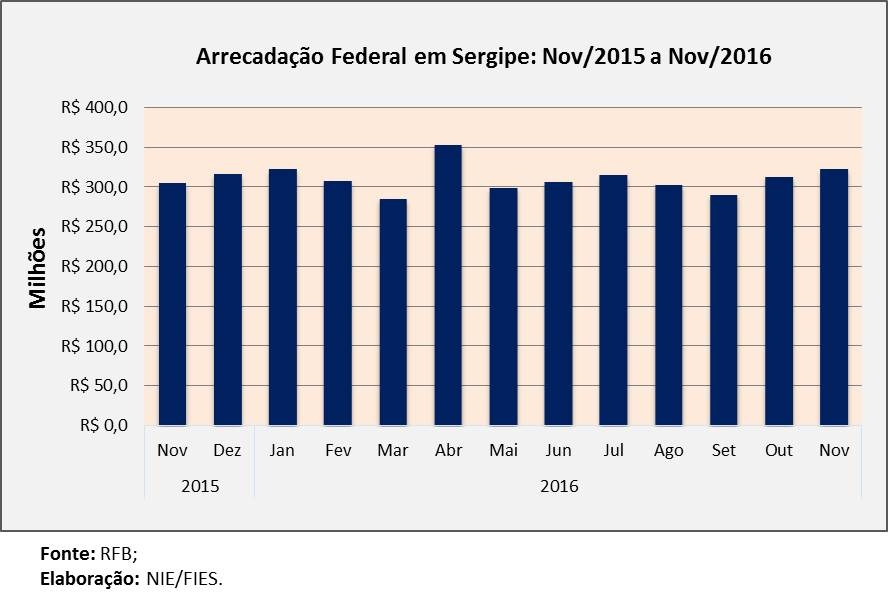 Análise realizada pelo Boletim Sergipe Econômico, parceria do Núcleo de Informações Econômicas (NIE) da Federação das Indústrias do Estado de Sergipe (FIES) e do Departamento de Economia da UFS, com base nos dados da Receita Federal, verificou que a arrecadação, de novembro deste ano, ultrapassou os R$ 323,4 milhões, assinalando crescimento real de 2,9%, quando comparado aos tributos recolhidos no mês imediatamente anterior, outubro último.