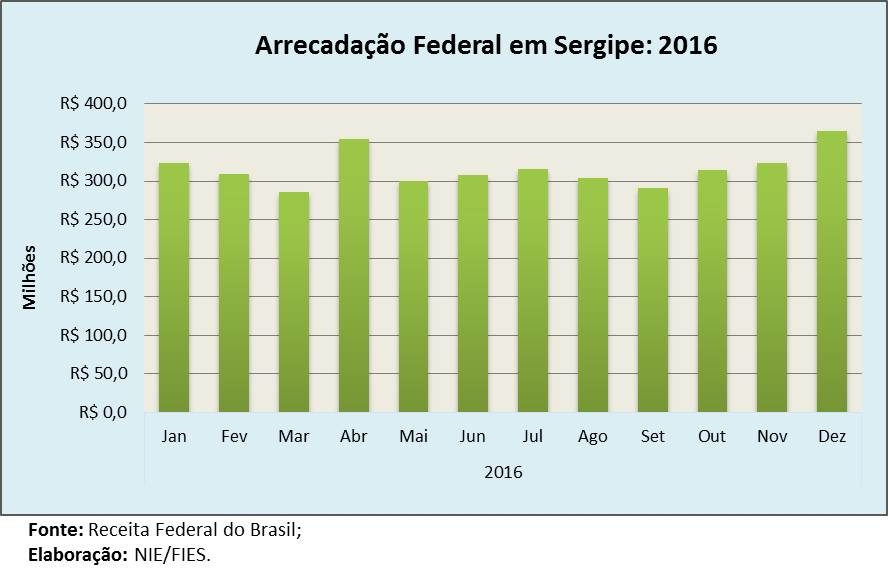 Análise realizada pelo Boletim Sergipe Econômico, parceria do Núcleo de Informações Econômicas (NIE) da Federação das Indústrias do Estado de Sergipe (FIES) e do Departamento de Economia da UFS, com base nos dados da Receita Federal, verificou que a arrecadação, de dezembro de 2016, ultrapassou os R$ 364,3 milhões, assinalando crescimento real de 12,3%, considerando o efeito da inflação no período, medido pelo Índice Nacional de Preço ao Consumidor Amplo (IPCA), quando comparado aos tributos recolhidos no mês imediatamente anterior, novembro do ano passado. Também foi observado aumento real de 8,1% em relação a arrecadação de dezembro de 2015.