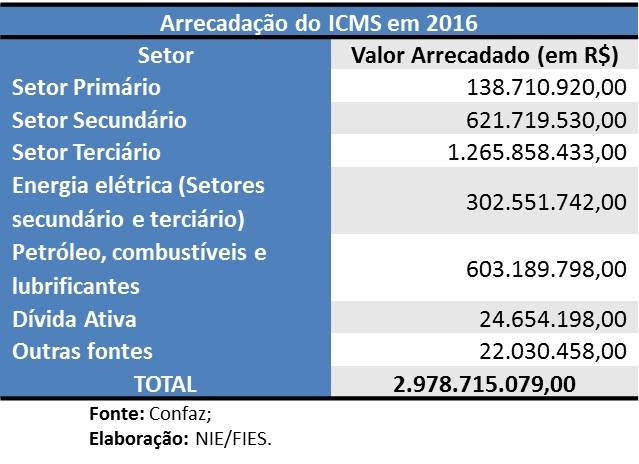 Em 2016, a movimentação de bens, produtos e serviços dos setores primário, secundário e terciário contribuiu com mais de R$ 2 bilhões ou 68% do montante recolhido com o tributo para os cofres do estado.