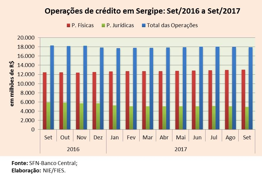 Análise realizada pelo Boletim Sergipe Econômico, parceria do Núcleo de Informações Econômicas (NIE) da Federação das Indústrias do Estado de Sergipe (FIES) e do Departamento de Economia da UFS, com base nos dados do Banco Central, revelou que o total das operações de crédito no estado, em setembro deste ano, totalizaram R$ 17,9 bilhões.