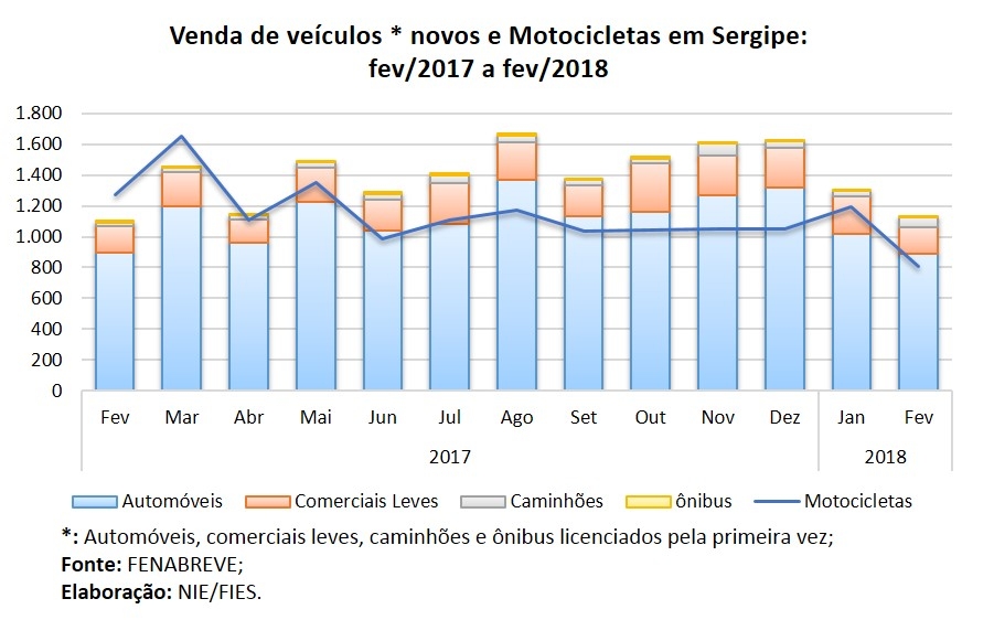 Análise realizada pelo Boletim Sergipe Econômico, parceria do Núcleo de Informações Econômicas (NIE) da Federação das Indústrias do Estado de Sergipe (FIES) e do Departamento de Economia da UFS, com base nos dados da Federação Nacional da Distribuição de Veículos Automotores (FENABRAVE), indicou que as vendas de veículos novos no estado totalizaram 1.130 unidades, no segundo mês do ano.