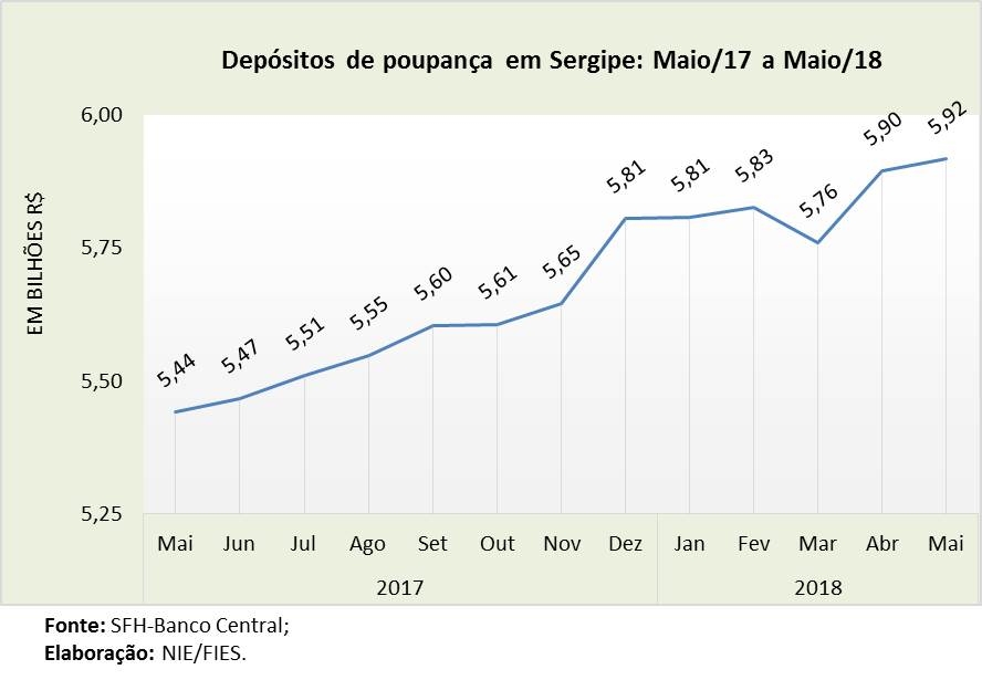 Análise realizada pelo Boletim Sergipe Econômico, parceria do Núcleo de Informações Econômicas (NIE) da Federação das Indústrias do Estado de Sergipe (FIES) e do Departamento de Economia da UFS, com base nos dados do Sistema Financeiro de Habitação (SFH) do Banco Central, revelou que os depósitos na caderneta de poupança no estado totalizaram pouco mais de R$ 5,9 bilhões, em maio deste ano.