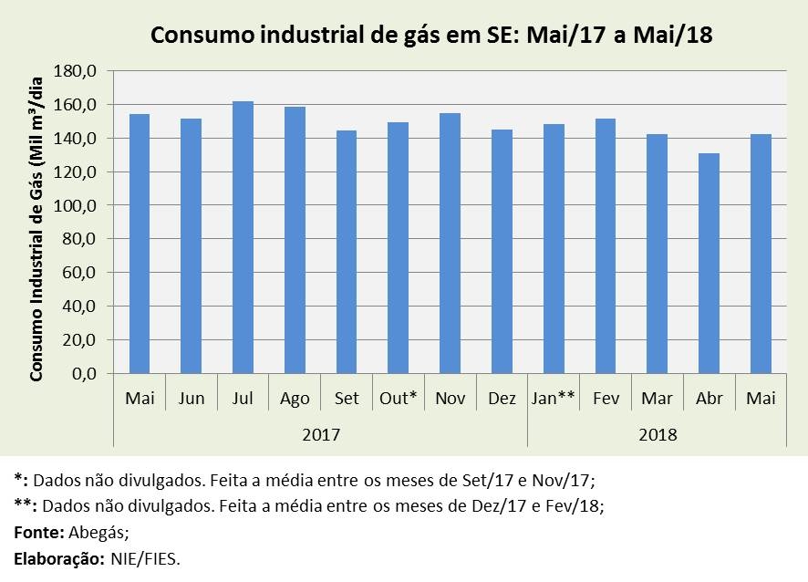 Análise realizada pelo Boletim Sergipe Econômico, parceria do Núcleo de Informações Econômicas (NIE) da Federação das Indústrias do Estado de Sergipe (FIES) e do Departamento de Economia da UFS, com base nos dados da Associação Brasileira das Empresas Distribuidoras de Gás Canalizado (ABEGÁS), apontou que foram consumidos 247,8 mil metros cúbicos/dia de gás natural em Sergipe, no mês de maio deste ano.