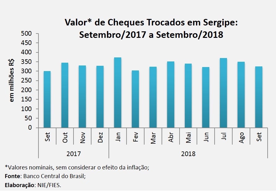Análise realizada pelo Boletim Sergipe Econômico, parceria do Núcleo de Informações Econômicas (NIE) da Federação das Indústrias do Estado de Sergipe (FIES) e do Departamento de Economia da UFS, com base nos dados do Banco Central, mostra que foram compensados mais de 123 mil cheques em Sergipe, no mês de setembro do ano corrente.