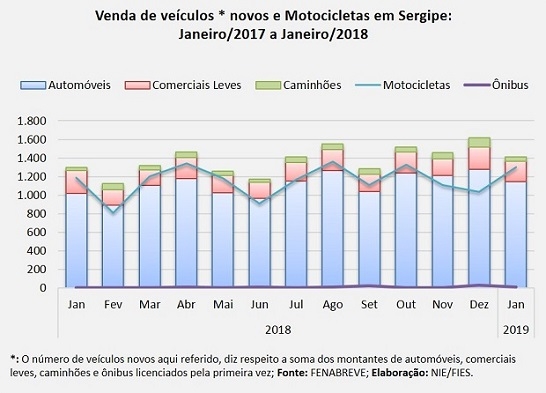 Análise realizada pelo Boletim Sergipe Econômico, parceria do Núcleo de Informações Econômicas (NIE) da Federação das Indústrias do Estado de Sergipe (FIES) e do Departamento de Economia da UFS, com base nos dados da Federação Nacional da Distribuição de Veículos Automotores (FENABRAVE), apontou que as vendas de veículos novos no estado totalizaram 1.424 unidades, em janeiro deste ano.