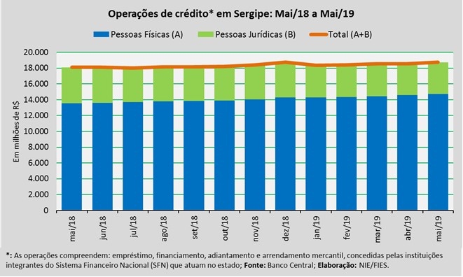 Análise realizada pelo Boletim Sergipe Econômico, parceria do Núcleo de Informações Econômicas (NIE) da Federação das Indústrias do Estado de Sergipe (FIES) e do Departamento de Economia da UFS, com base nos dados do Banco Central, revelou o saldo total das operações de crédito, no quinto mês do ano, em Sergipe chegou a R$ 18,7 bilhões.