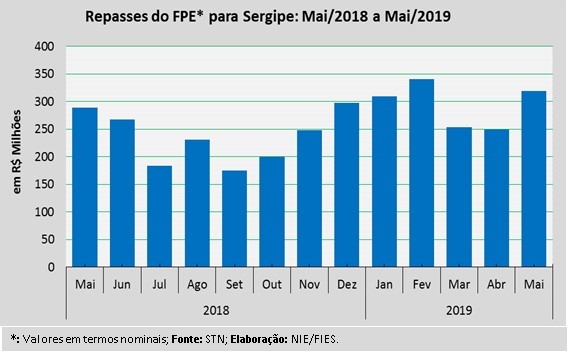 Análise realizada pelo Boletim Sergipe Econômico, parceria do Núcleo de Informações Econômicas (NIE) da Federação das Indústrias do Estado de Sergipe (FIES) e do Departamento de Economia da UFS, com base nos dados da Secretaria do Tesouro Nacional (STN), indicou que o repasse do Fundo de Participação dos Estados (FPE) para o estado de Sergipe, em maio deste ano, foi de R$ 319 milhões.