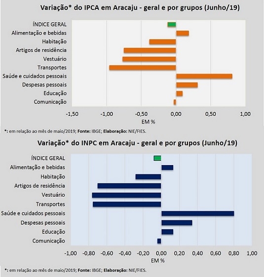 Análise realizada pelo Boletim Sergipe Econômico, parceria do Núcleo de Informações Econômicas da Federação das Indústrias do Estado de Sergipe (FIES) e do Departamento de Economia da UFS, com base nos dados do Instituto Brasileiro de Geografia e Estatística (IBGE), revelou que a capital sergipana, em junho deste ano, teve queda de 0,12% na inflação medida pelo Índice de Preços ao Consumidor Amplo – IPCA.